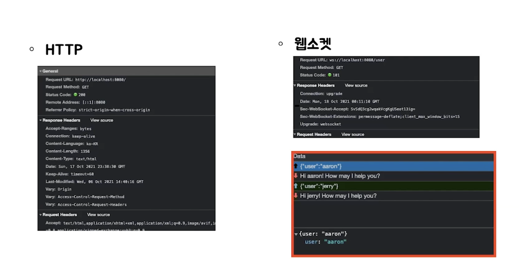 이후부터는 HTTP가 아니라 WebSocket 프로토콜로 동작합니다.